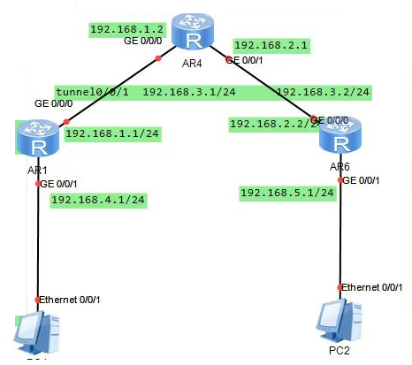 ip route-static 192.168.4.0 255.255.255.0 Tunne10/0/1
