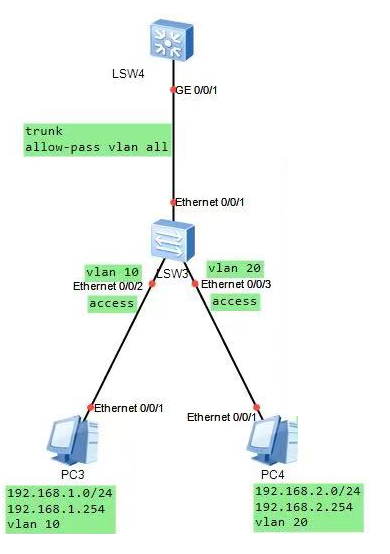 三层交换机也是交换机,所以sw4的60/0/1口和sw3的E0/0/1接口一样,要配置成trunk,并允许vlan通过
